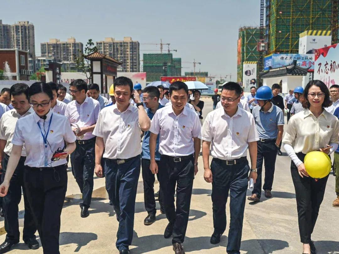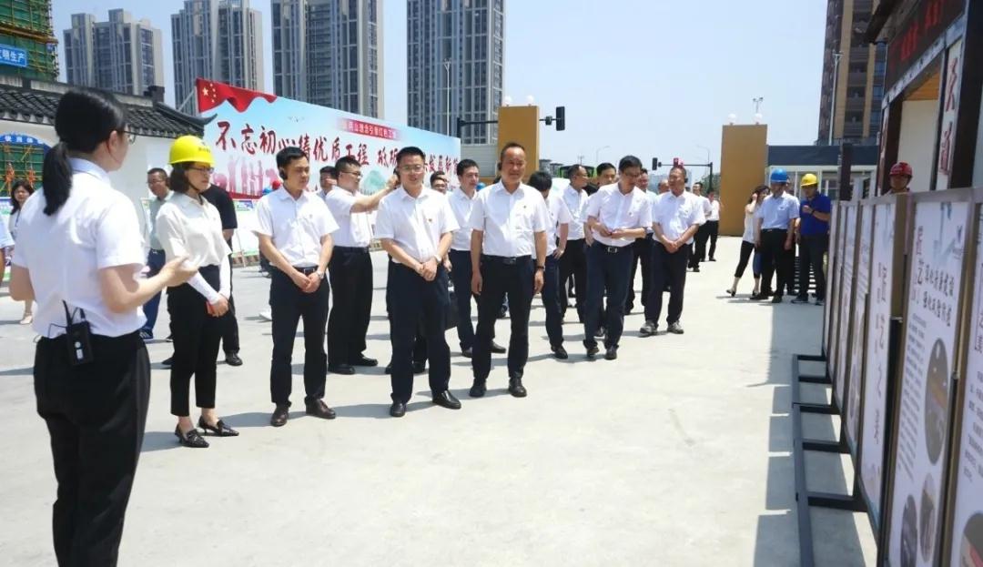 6月30日下午, 市委組織部副部長(zhǎng)沈秋,市委組織部部務(wù)會(huì)議成員、市委兩新工委專職副書記鄒冬輝,市建設(shè)局黨委委員、副局長(zhǎng)陳明法及各區(qū)縣有關(guān)領(lǐng)導(dǎo)50余人首站來到市北32號(hào)地塊,實(shí)地考察“紅色工地”建設(shè)情況。