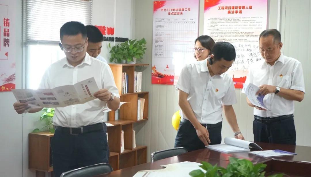 考察組一行還實(shí)地參觀了項(xiàng)目黨支部黨建工作室、黨員活動(dòng)室、紅色文化走廊,仔細(xì)翻閱“紅色工地”宣傳冊(cè)等相關(guān)臺(tái)賬資料,并認(rèn)真駐足觀看“紅色工地”建設(shè)宣傳片。觀摩結(jié)束后,考察組成員對(duì)市北32號(hào)地塊“紅色工地”建設(shè)工作給予充分肯定,并要求各承建單位要把黨建融入開發(fā)建設(shè)的全過程”,切實(shí)提升工地黨組織戰(zhàn)斗力,為中心工作服務(wù)。