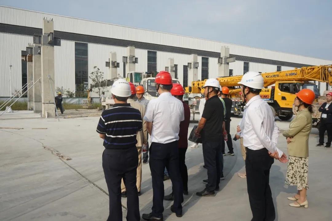 會前,大家參觀了基地內(nèi)各條生產(chǎn)線、構(gòu)件展示區(qū)和吊裝現(xiàn)場,了解了構(gòu)件生產(chǎn)工藝、工藝布置、設(shè)備運行情況和裝配式建筑吊裝的要點與難點。為加深大家對裝配式混凝土的了解,趙教授還與技術(shù)人員就PC生產(chǎn)的工藝流程及關(guān)鍵工序等進行了探討交流,并對基地下一步發(fā)展運營提出了寶貴的意見與建議。