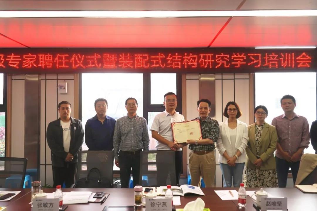 今年上半年通過對接各方資源,成功鎖定趙唯堅教授擔任高級顧問,承擔有關(guān)裝配式混凝土結(jié)構(gòu)技術(shù)業(yè)務(wù)指導工作。為充分發(fā)揮高級專家的示范引領(lǐng)作用,進一步促進公司裝配式結(jié)構(gòu)專業(yè)發(fā)展,10月13日下午,公司聯(lián)合中建科技在建筑工業(yè)化PC構(gòu)件項目現(xiàn)場舉行高級專家聘任儀式暨裝配式結(jié)構(gòu)研究學習培訓會。浙江大學教授、博士生導師趙唯堅及雙方有關(guān)領(lǐng)導、工程管理人員近30人參加會議。