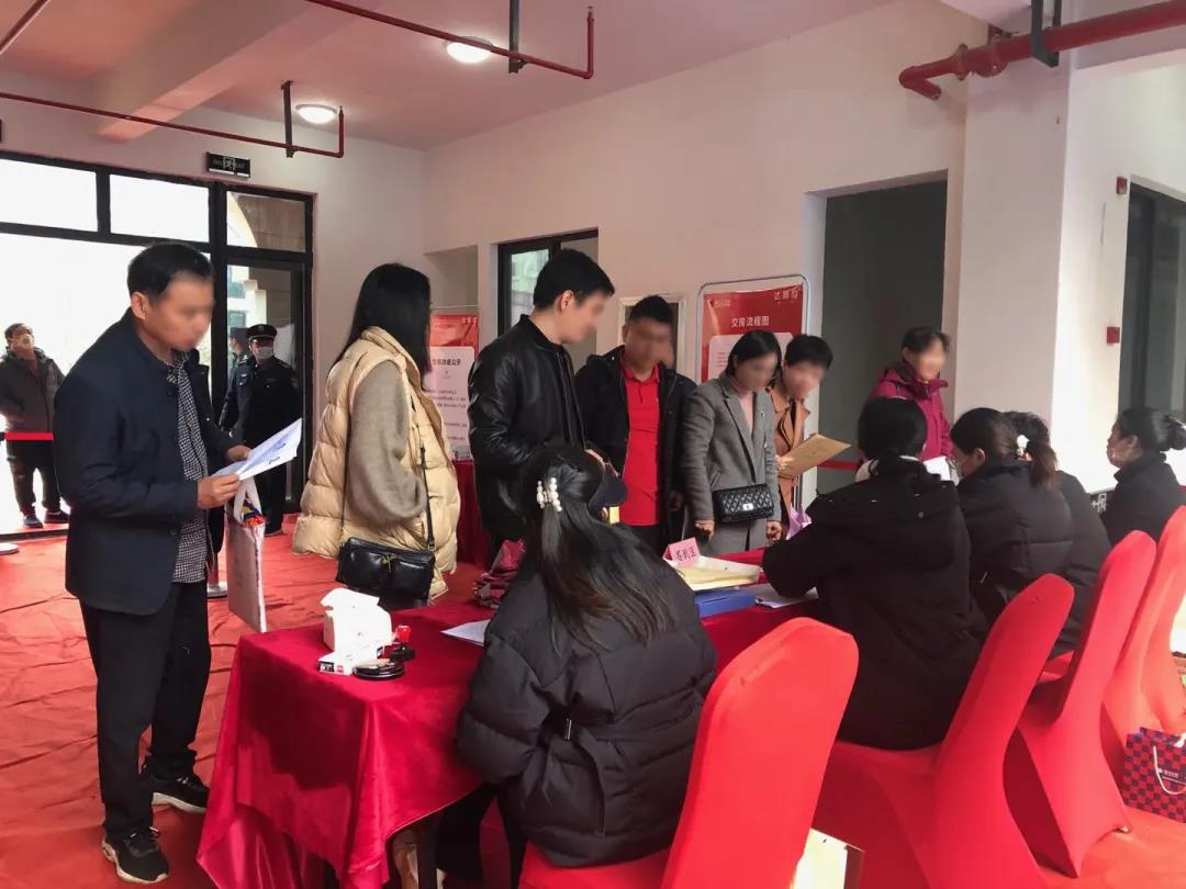 現(xiàn)場,業(yè)主們按照《交房流程圖》有序完成各項交房事項,排隊檢測體溫、審核資料、繳納費用等程序,物業(yè)和工程人員耐心介紹、解答客戶提出的各方面問題,全程陪同看房,確保每位業(yè)主都能得到最舒適的交付感受。