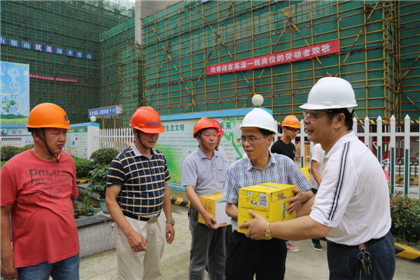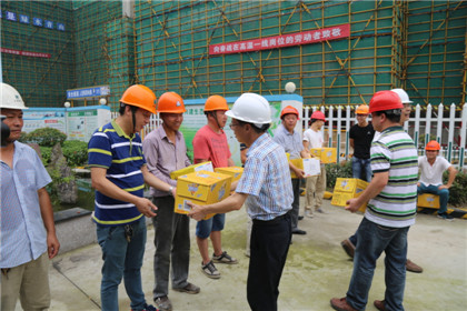 7月23日上午,市總工會黨組副書記王則康率權保部長王錫榮、副部長孫曉嵐副部長等市總慰問組,在局工會副主任盧美月、市城投集團公司工會主席沈俊、副總經(jīng)理周紅衛(wèi)的陪同下,來到金田家園送清涼,慰問一線民工,王書記一行將40箱飲料一一送到民工手中,送去清涼的同時向大家的不辭辛苦、默默奉獻表示了感謝,并提醒他們一定要適當調(diào)整、注意休息。