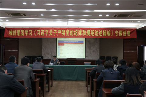 為進(jìn)一步認(rèn)識加強(qiáng)黨的紀(jì)律建設(shè)的極端重要性,準(zhǔn)確把握紀(jì)律建設(shè)的基本要求,根據(jù)上級學(xué)習(xí)《論述摘編》通知的有關(guān)要求,3月30日下午,城投集團(tuán)公司在六樓會議室舉行了學(xué)習(xí)《習(xí)近平關(guān)于嚴(yán)明黨的紀(jì)律和規(guī)矩論述摘編》專題講座。講座邀請了市紀(jì)委案管室鐘新春主任前來授課,公司領(lǐng)導(dǎo)、中層干部和重點(diǎn)崗位專業(yè)技術(shù)人員70多人參加了本次學(xué)習(xí)。